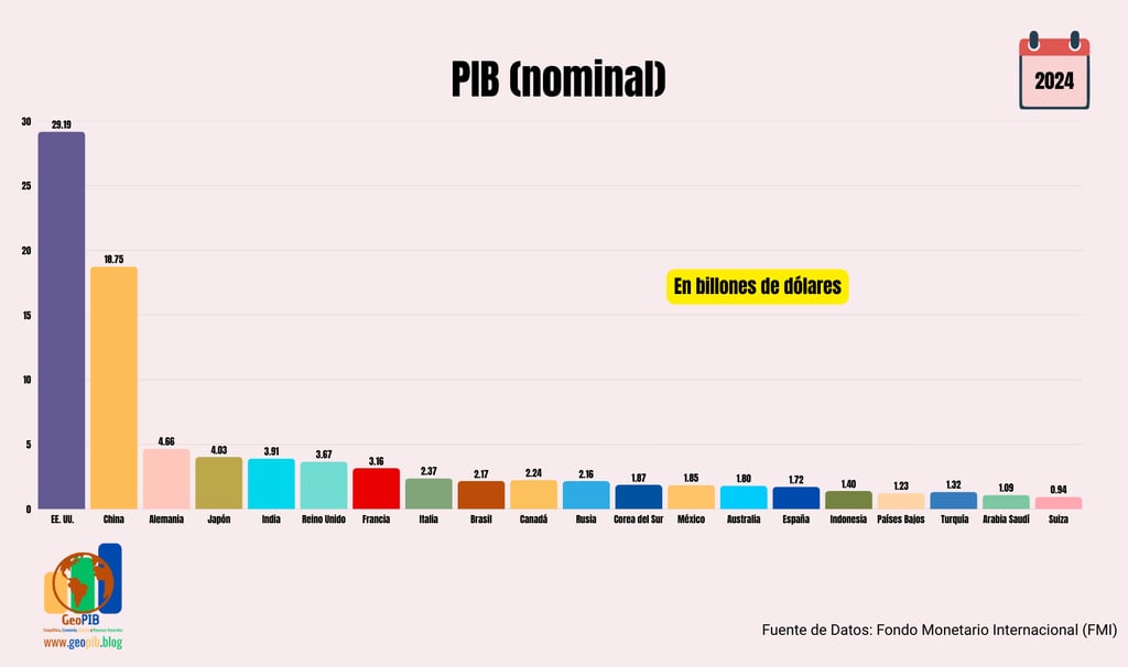 El PIB mide el valor total de todos los bienes y servicios producidos en un país durante un año. Es el indicador más utilizado para conocer el tamaño de una economía y su capacidad productiva. Un PIB alto refleja una economía extensa y diversificada, mientras que su evolución en el tiempo permite analizar crecimiento, recesión o estancamiento económico.